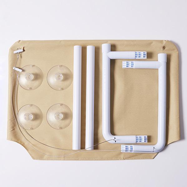 4 x Ventosas 2 x Armações de Suporte Retas 2 x Armações de Suporte Dobradas 1 x Tecido Oxford |