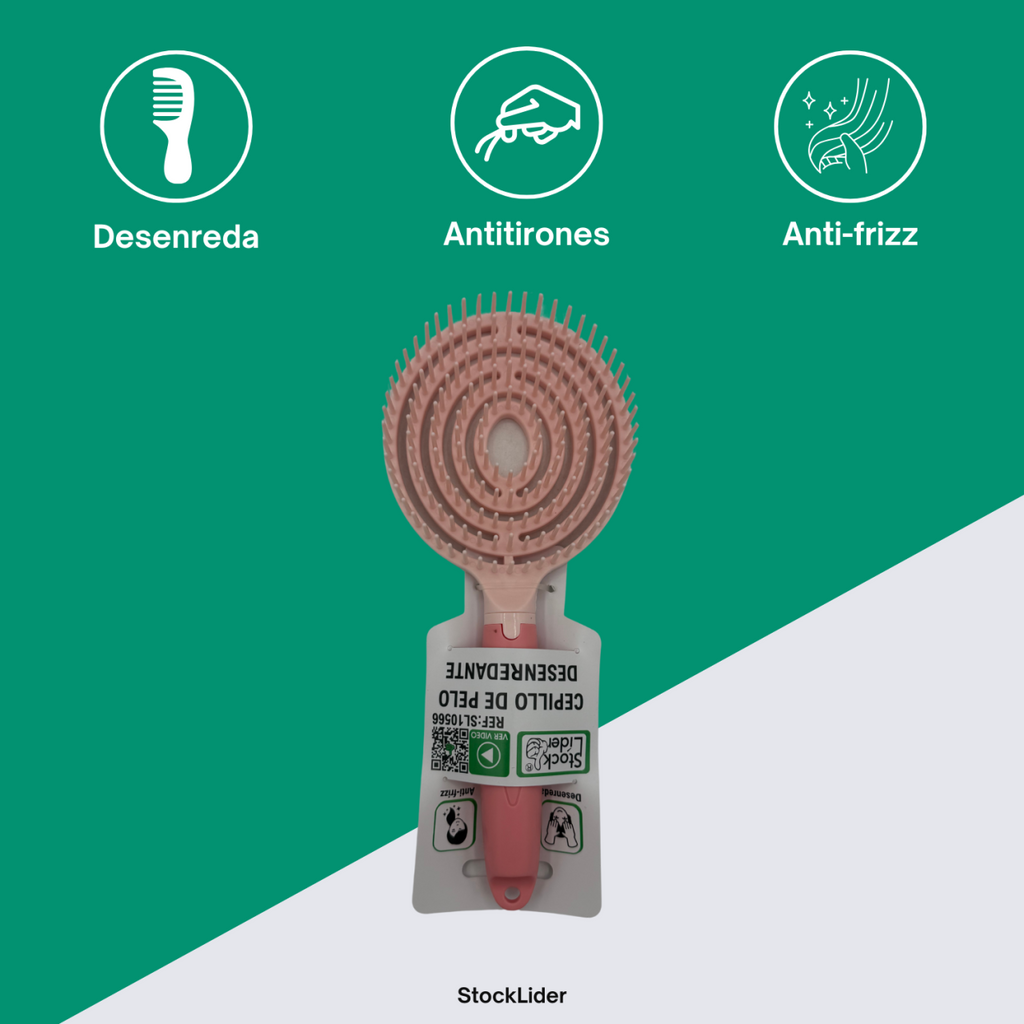 A escova desembaraçadora Stock Líder foi desenvolvida para proporcionar uma experiência de pentear suave e sem dor. Graças à sua estrutura ergonómica e às cerdas flexíveis, desembaraça o cabelo facilmente sem o danificar nem provocar incómodos puxões, mesmo nos fios mais rebeldes.