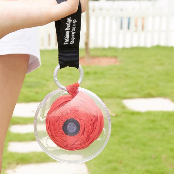 Você gosta de fazer compras? Leve este saco de compras versátil de dobra fácil com você! Basta envolvê-lo no disco para torná-lo do tamanho da palma da sua mão e colocá-lo em sua bolsa ou bolso. É muito mais ecológico e moderno do que sacos de plástico. Você vai achar perfeito para fazer compras, viajar e muito mais!